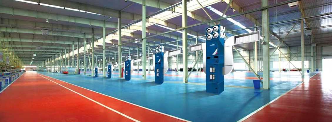 車間自循環煙塵凈化器是將凈化后的空氣送入工作區,并在地面上形成一層較薄的空氣層。空氣層是由較涼的新鮮空氣擴散而成。室內的熱源(人員及設備)產生向上的對流氣流。新鮮空氣由于熱源的浮力作用使其向室內上部流動并引成室內空氣運動的主導氣流。排風口設置在設備的頂部,并將污染空氣吸入設備內部。室內自循環一體的送風速度約為<0.5m/s左右。送風的動量很低以致對室內主導氣流無任何實際的影響。